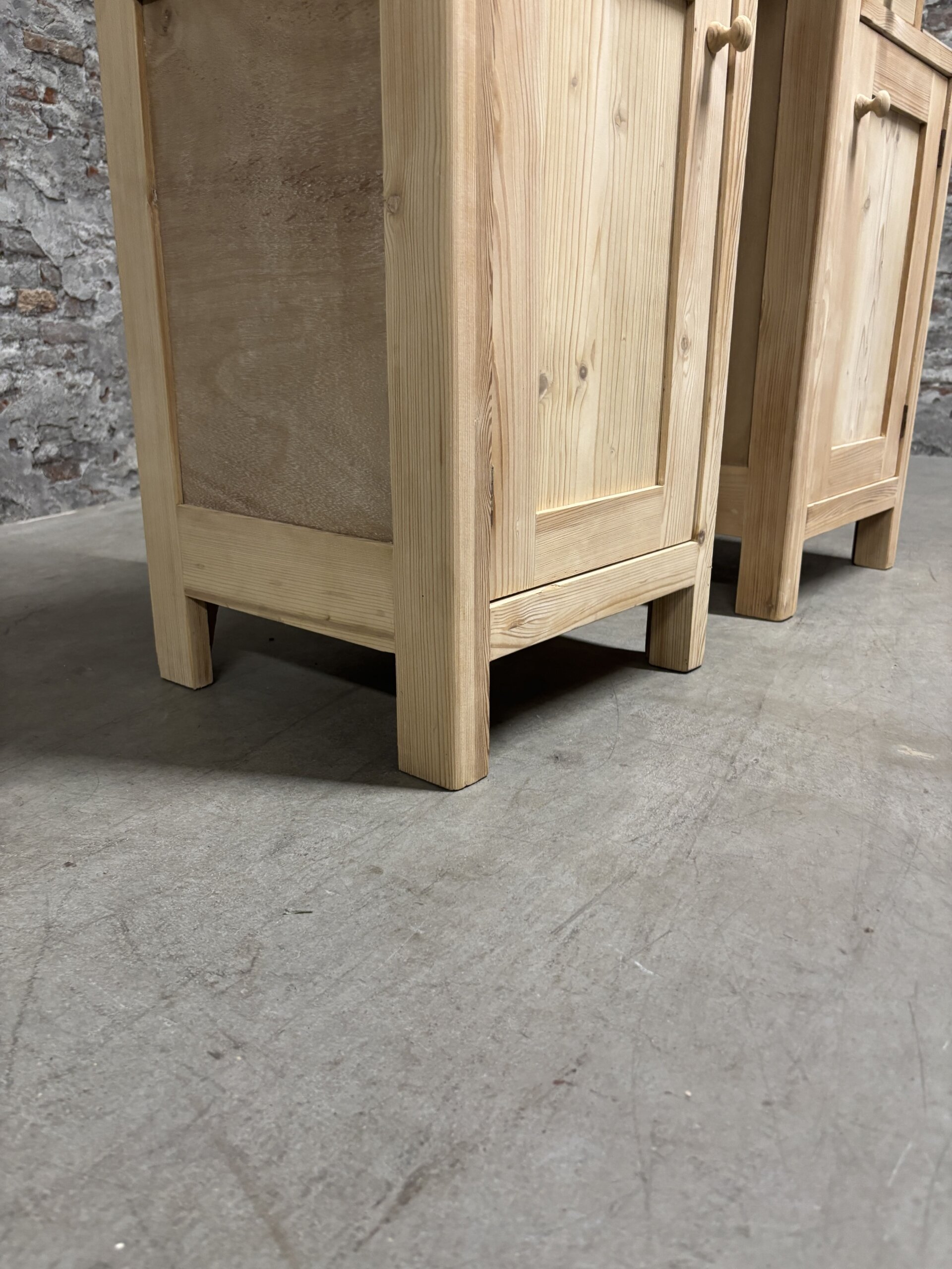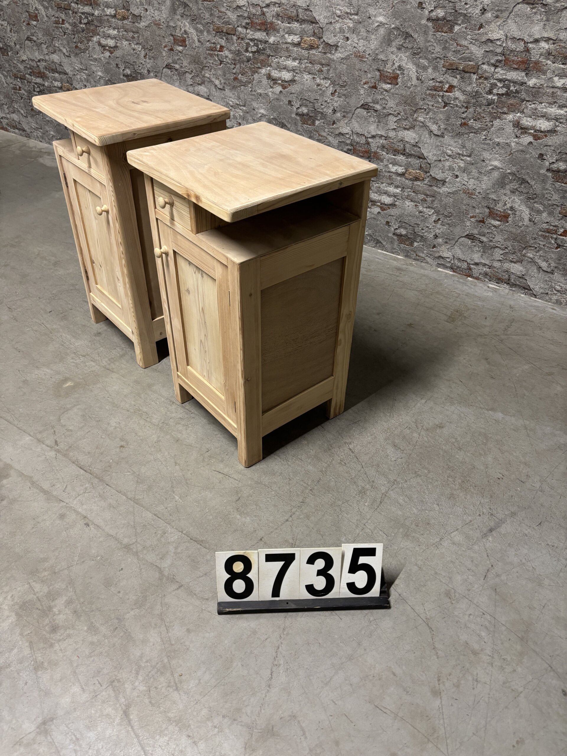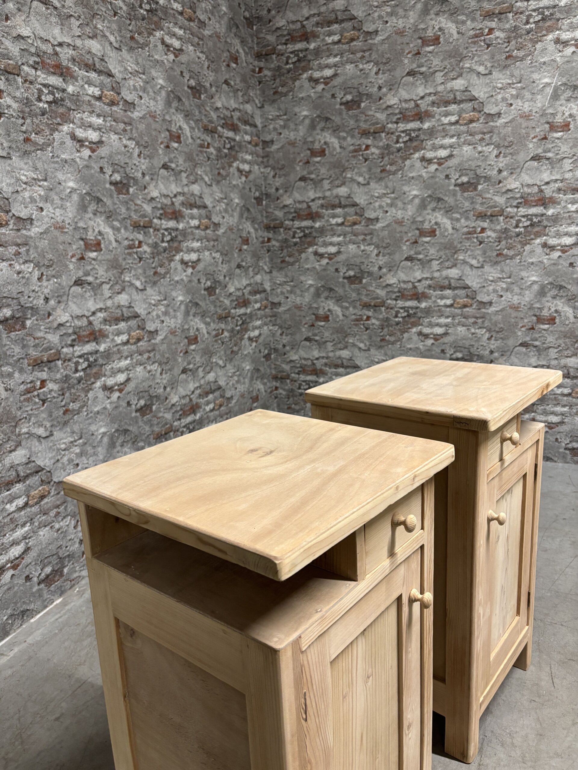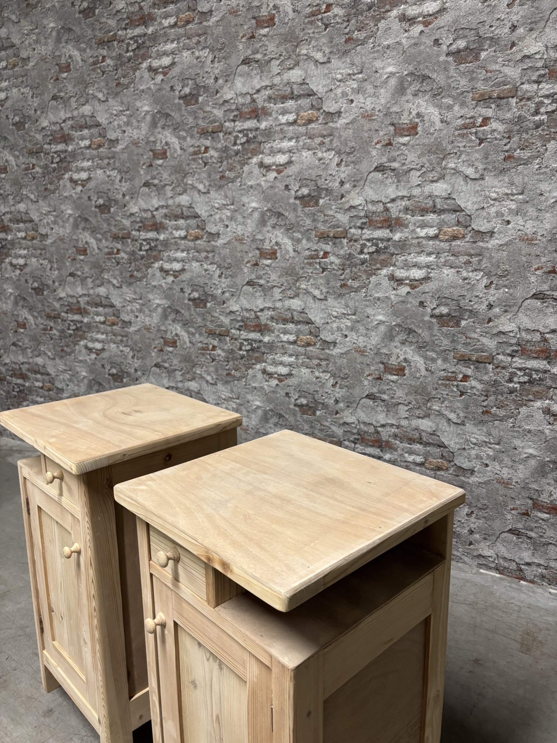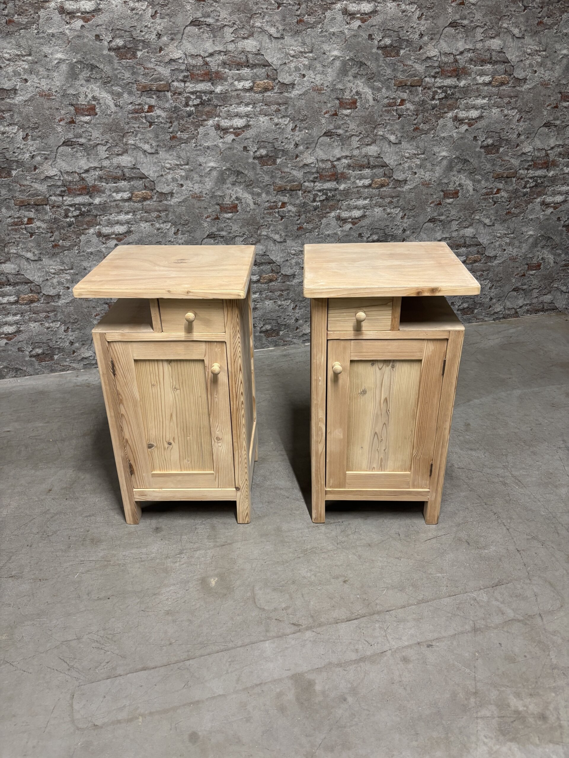 Antieke nachtkastjes van grenen met praktische opbergruimte
