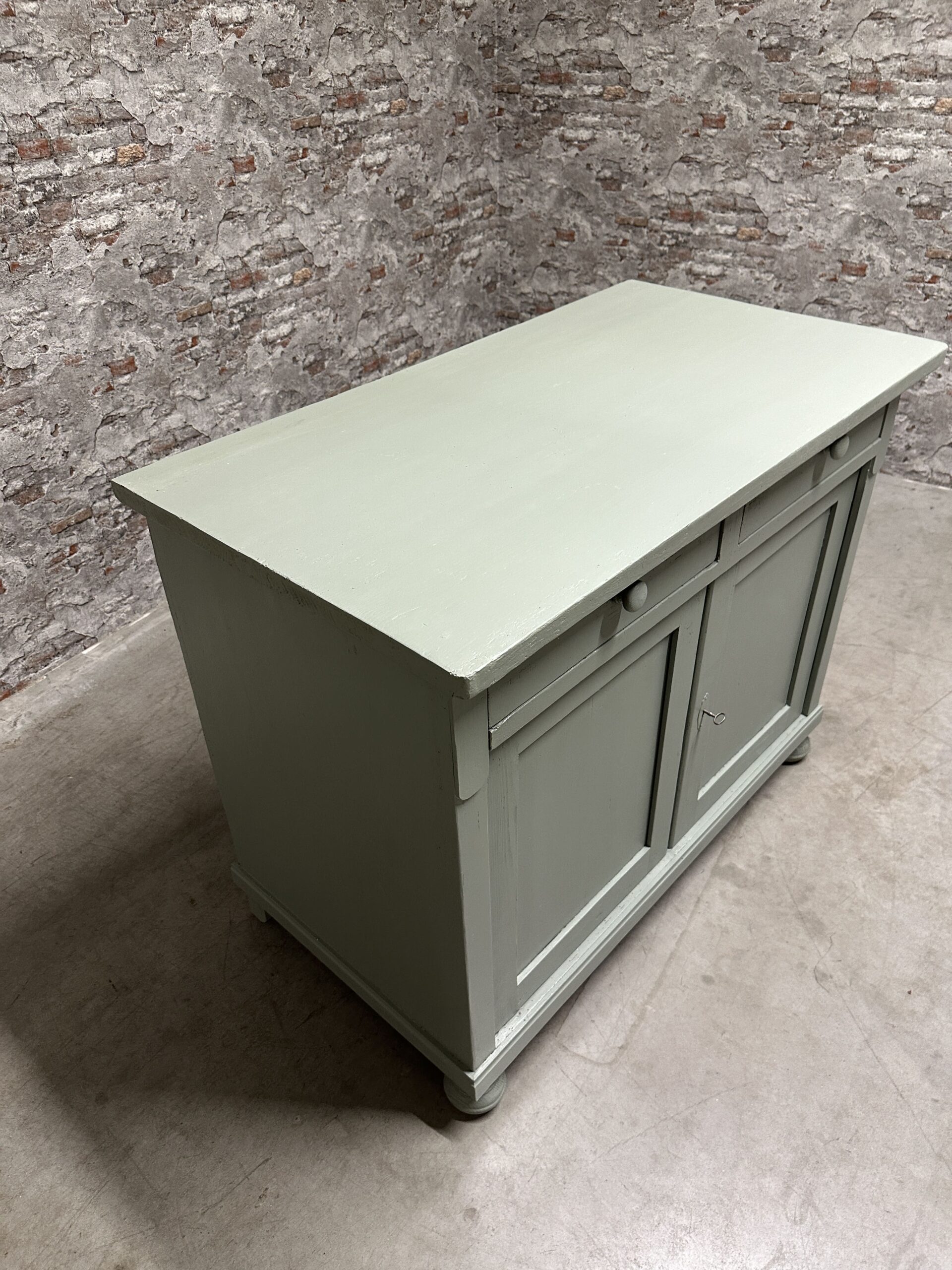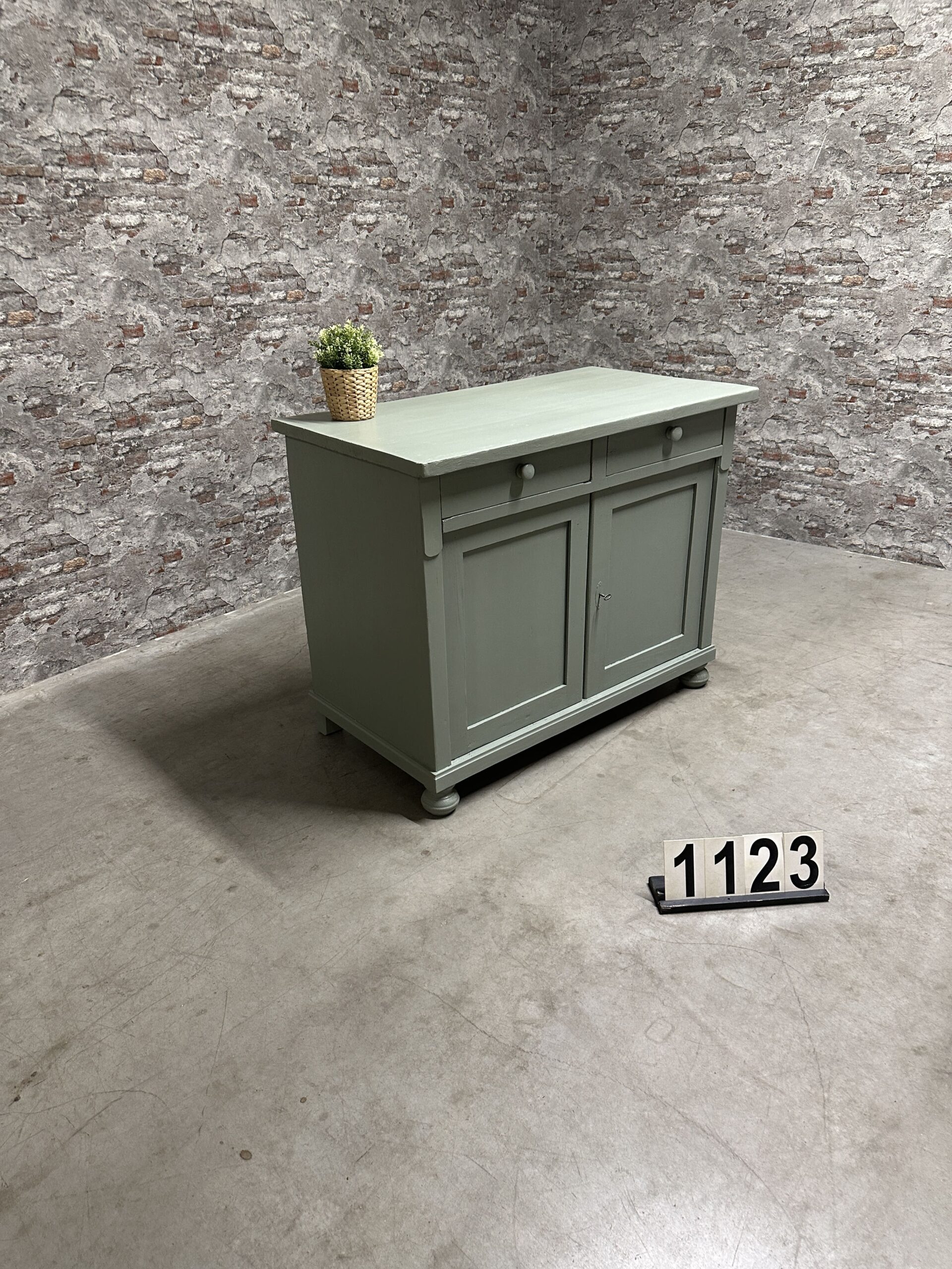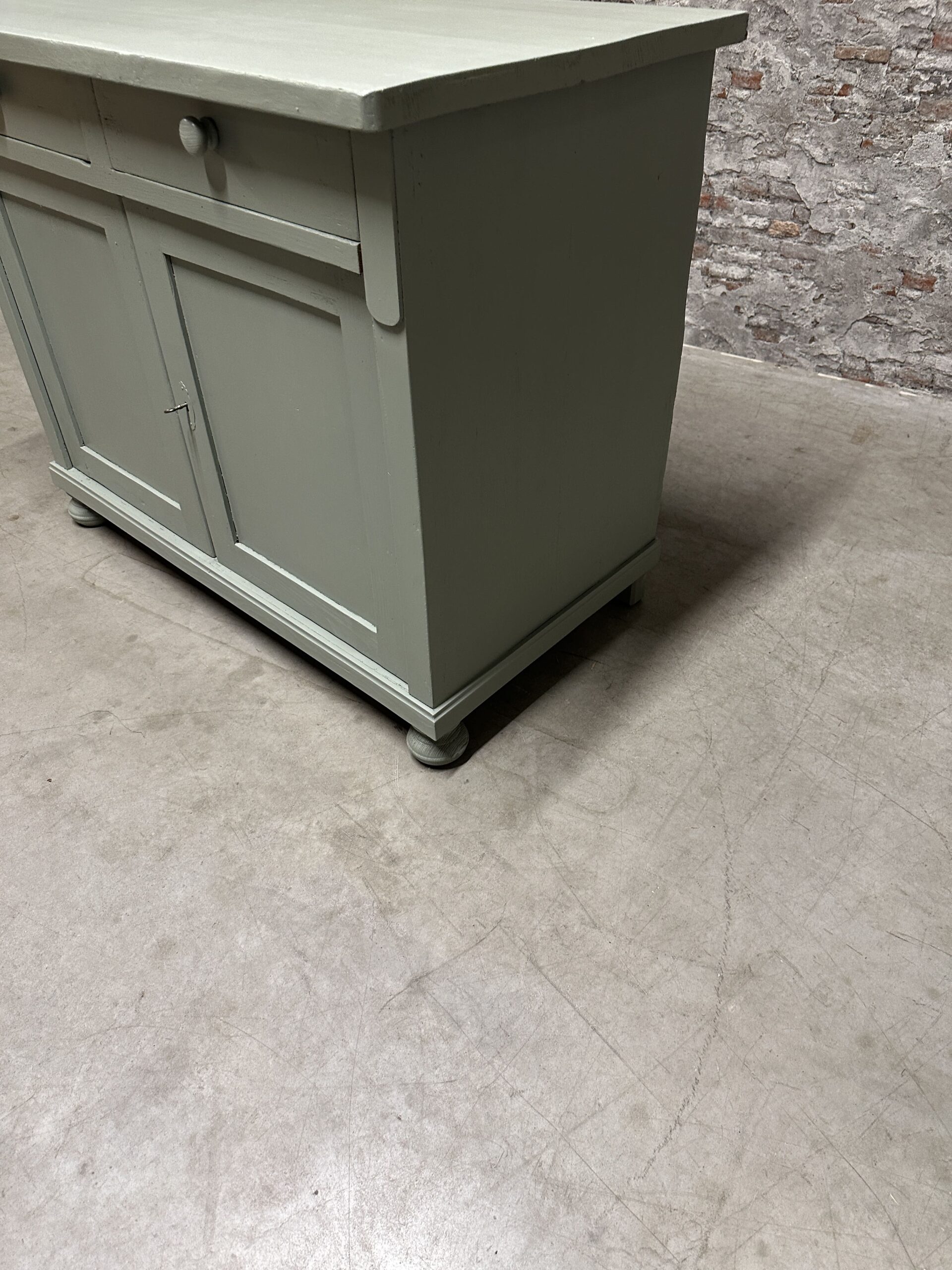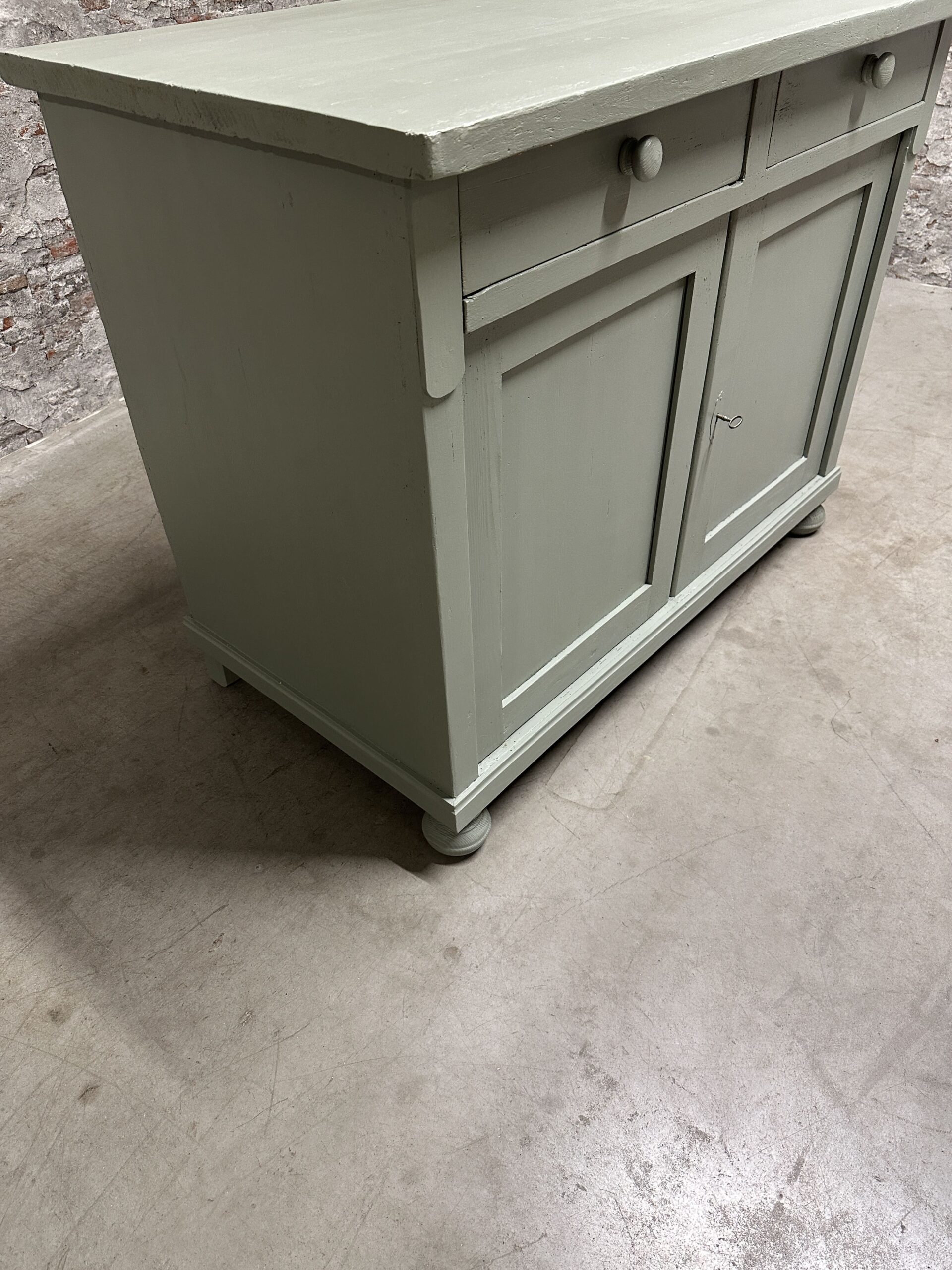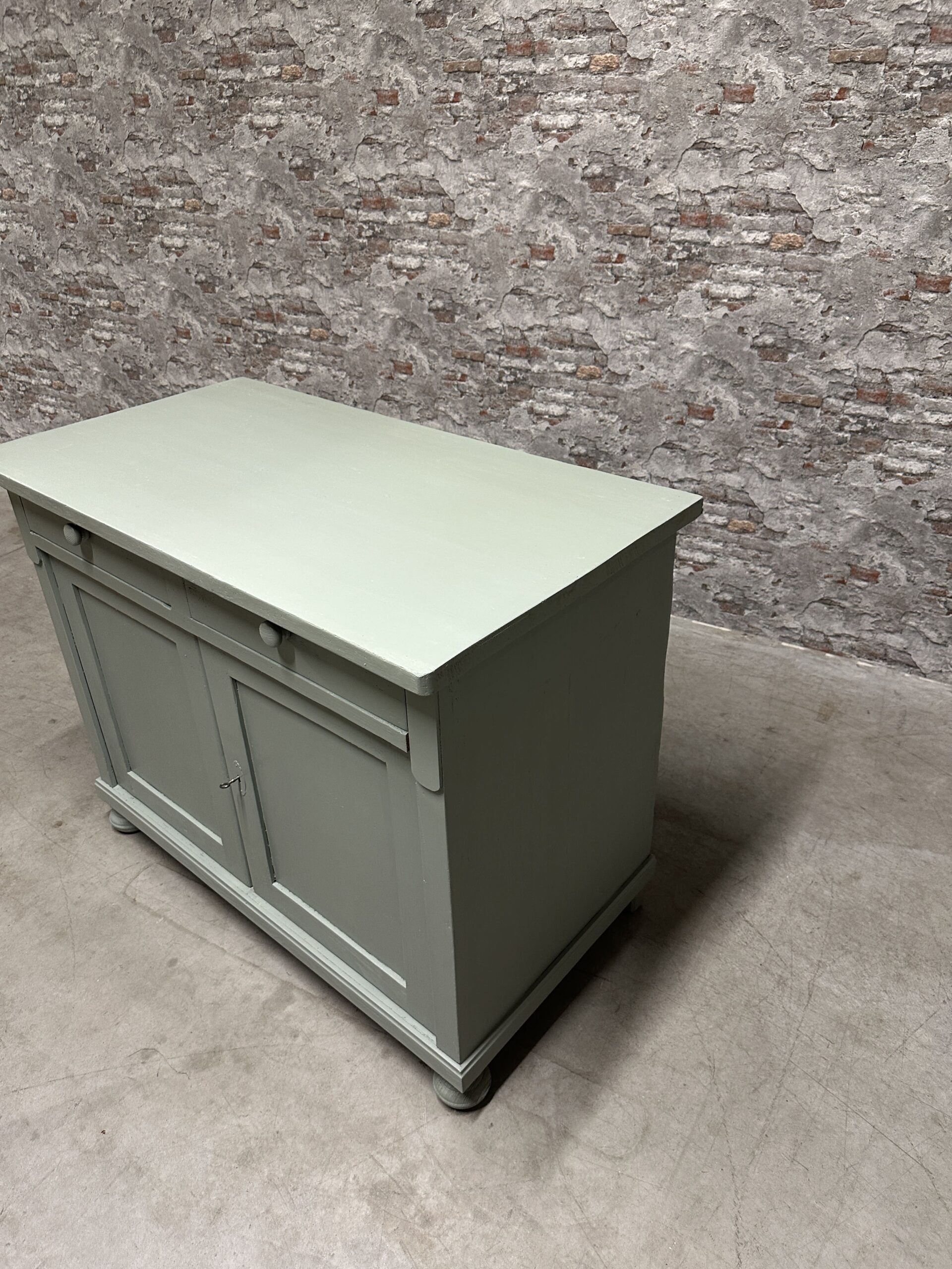 Ben je op zoek naar een stijlvolle en praktische opbergoplossing? Deze groene houten commode combineert tijdloze elegance met moderne functionaliteit. Perfect voor wie houdt van karakteristieke meubels met een verhaal.